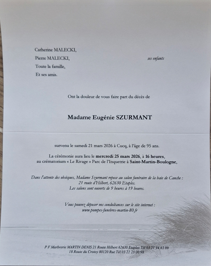 Déroulement des funérailles de Madame Eugenie SZURMANT